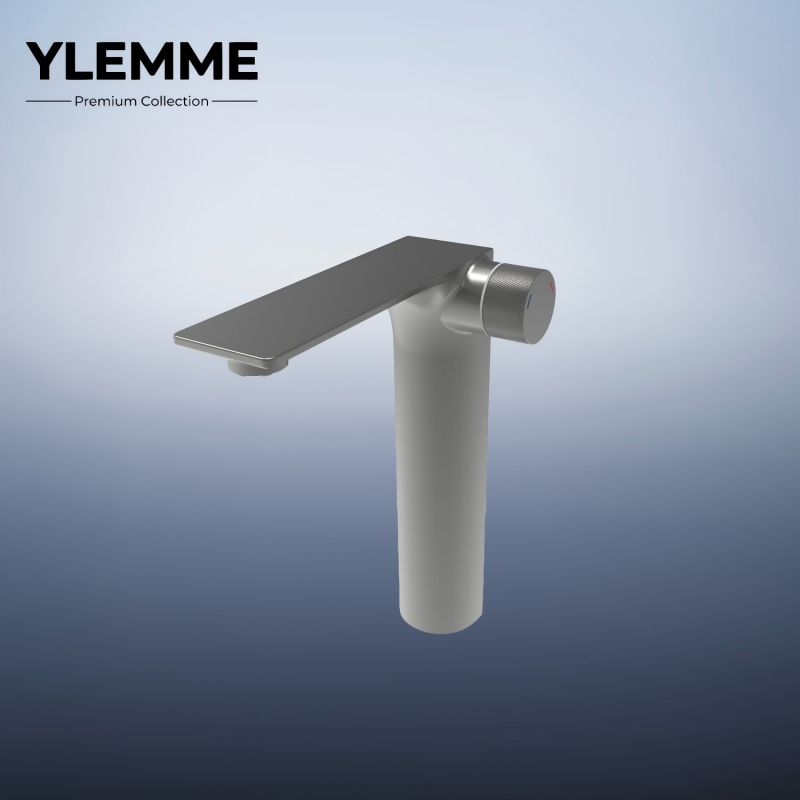This avant-garde tall basin faucet from YLEMME’s Premium Collection is meticulously crafted from solid brass, embodying uncompromising durability and cutting-edge minimalist design. Its striking flat rectangular spout and vertically elongated cylindrical body form a bold geometric silhouette, while the knurled control knob adds a tactile industrial touch. The mirror-like chrome finish delivers a brilliant, tarnish-resistant luster that elevates modern bathroom aesthetics. Engineered for precise water flow control and long-term corrosion resistance, it serves as a striking statement piece for contemporary bathrooms, merging timeless brass quality with innovative, space-saving industrial design.