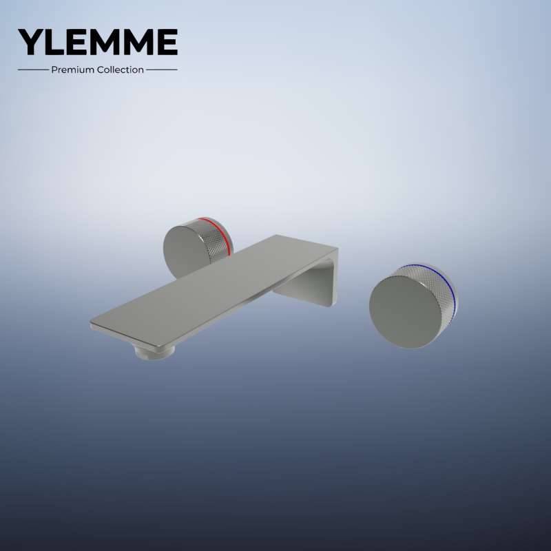 This avant-garde wall-mounted basin faucet from YLEMME’s Premium Collection redefines modern bathroom elegance, expertly crafted from solid brass for unparalleled durability and corrosion resistance. Its distinctive split two-piece design features a sleek rectangular spout and precision-engineered knurled control knobs, marked with red/blue indicators for intuitive hot/cold adjustment. The mirror-like chrome finish exudes high-end luxury, while the separate knobs offer tactile, precise control over water flow and temperature. Engineered to save counter space and elevate contemporary bathroom decor, it seamlessly merges timeless brass craftsmanship with innovative, industrial-inspired design.