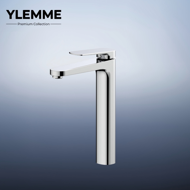 This elevated tall basin faucet from YLEMME’s Premium Collection is meticulously forged from solid brass, embodying enduring quality and fluid minimalist design. Its slender cylindrical body and seamless curved spout create a graceful, modern silhouette, while the mirror-like chrome plating delivers a brilliant, tarnish-resistant finish that elevates any bathroom aesthetic. The ergonomic flat lever handle enables intuitive control of water flow and temperature, blending seamless operation with understated elegance. Engineered for long-term reliability and corrosion resistance, it serves as a refined centerpiece for contemporary bathrooms, merging premium brass craftsmanship with innovative, high-rise design.
