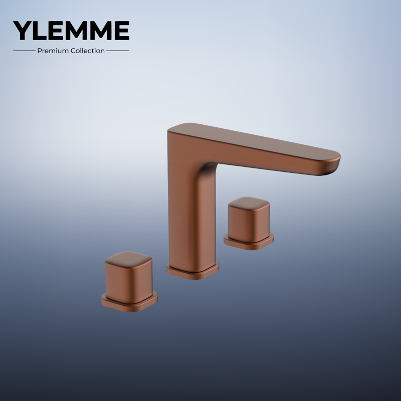 This refined three-hole basin faucet from YLEMME’s Premium Collection is meticulously crafted from solid brass, embodying enduring quality and fluid modern design. Its sleek curved central spout and two compact square control knobs create a balanced, minimalist silhouette, while the mirror-like chrome plating delivers a brilliant, tarnish-resistant finish that elevates any bathroom aesthetic. The dual knobs enable precise, independent control of water flow and temperature, blending seamless operation with understated elegance. Engineered for long-term reliability and corrosion resistance, it serves as a refined centerpiece for contemporary bathrooms, merging premium brass craftsmanship with innovative, streamlined design.